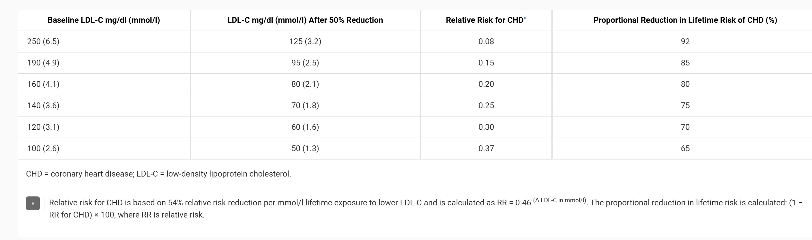 - At age 50 (6,250 cholesterol-years): 2% risk