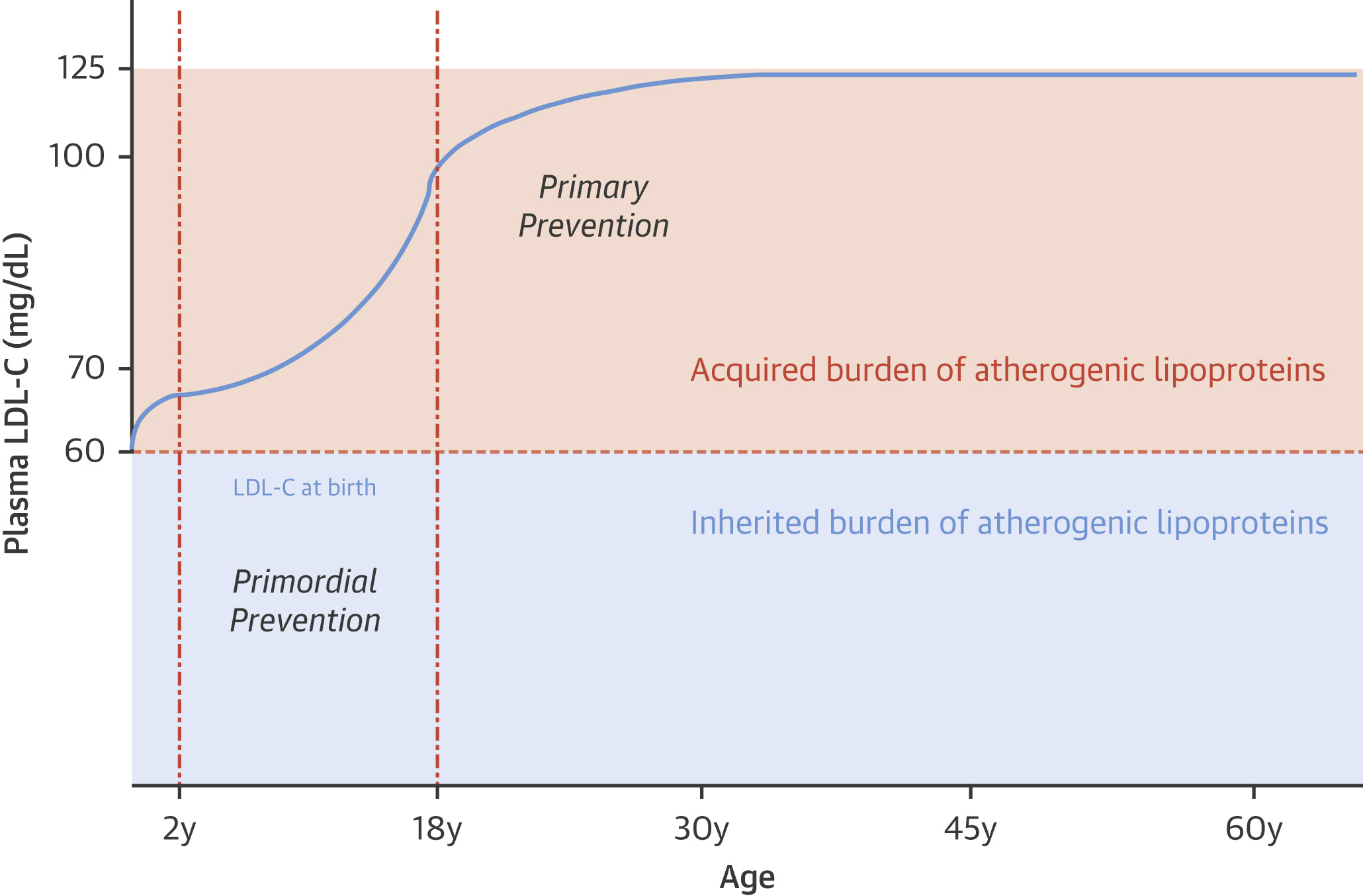 Figure 3. Life Course Trajectory of LDL and Implications for Primordial Prevention