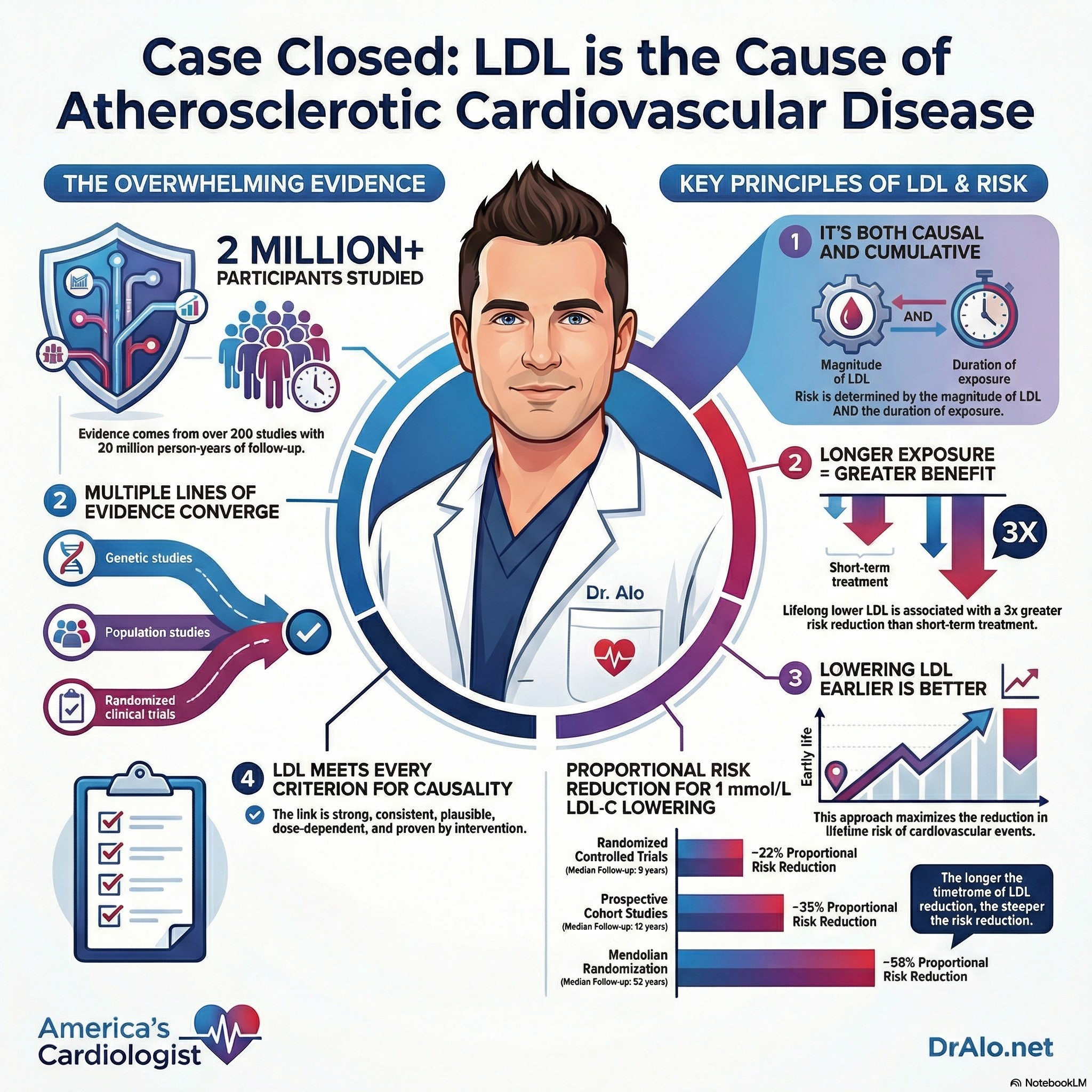 After reviewing the full body of scientific evidence, including genetics, population studies, and randomized clinical trials, the panel concluded unequivocally that LDL directly causes atherosclerosis, the underlying disease responsible for heart attacks and strokes.