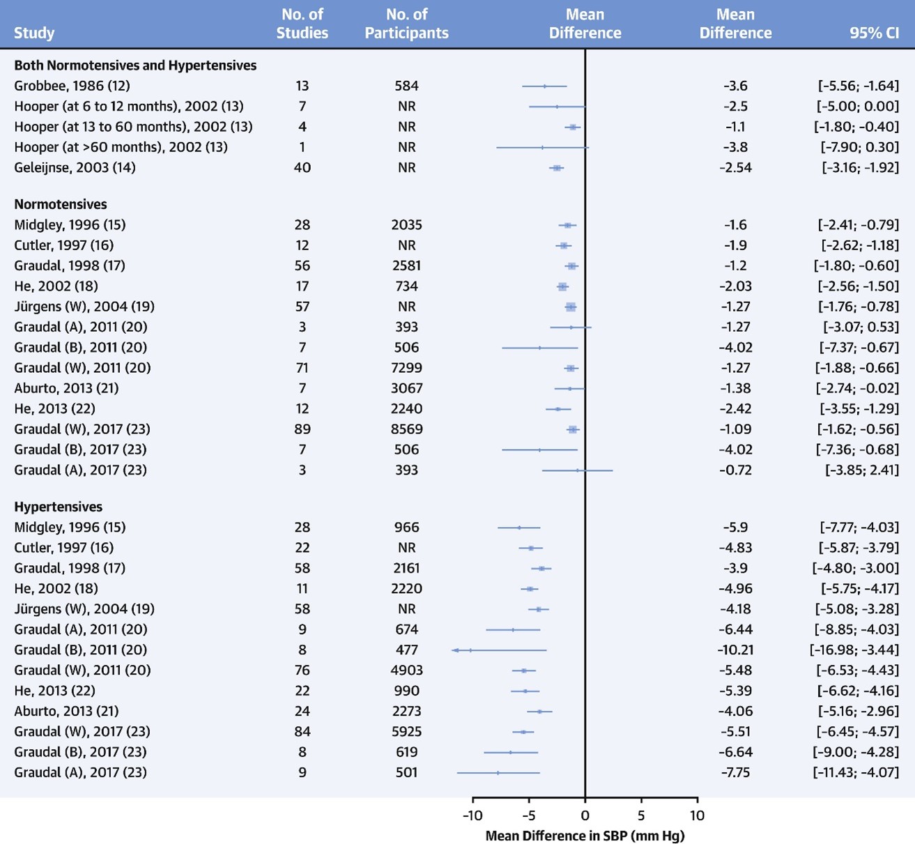 This was a meta-analysis that showed that in almost every study, reducing salt intake conferred protection and better outcomes.
