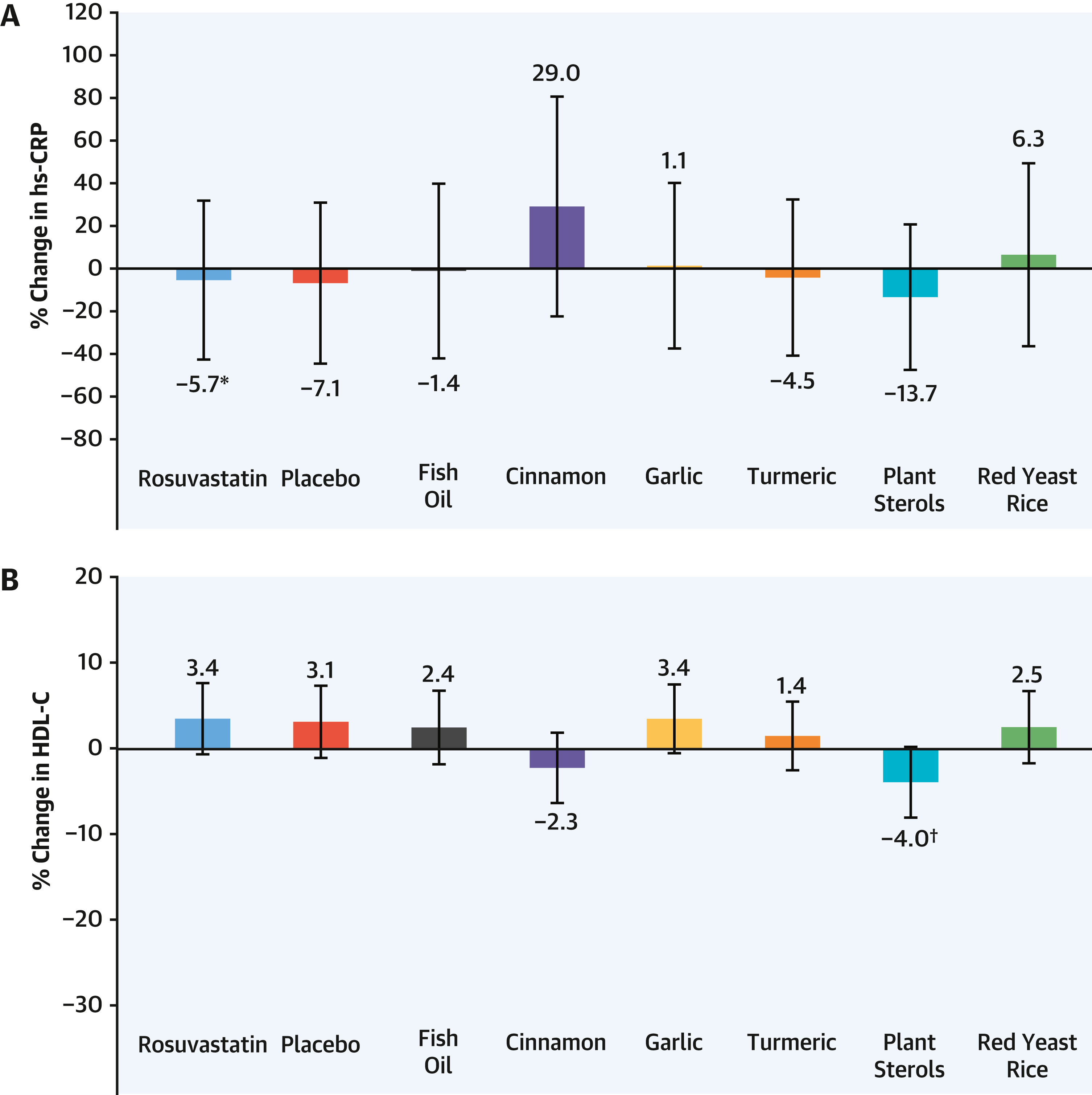 No supplement improved HDL vs. rosuvastatin |