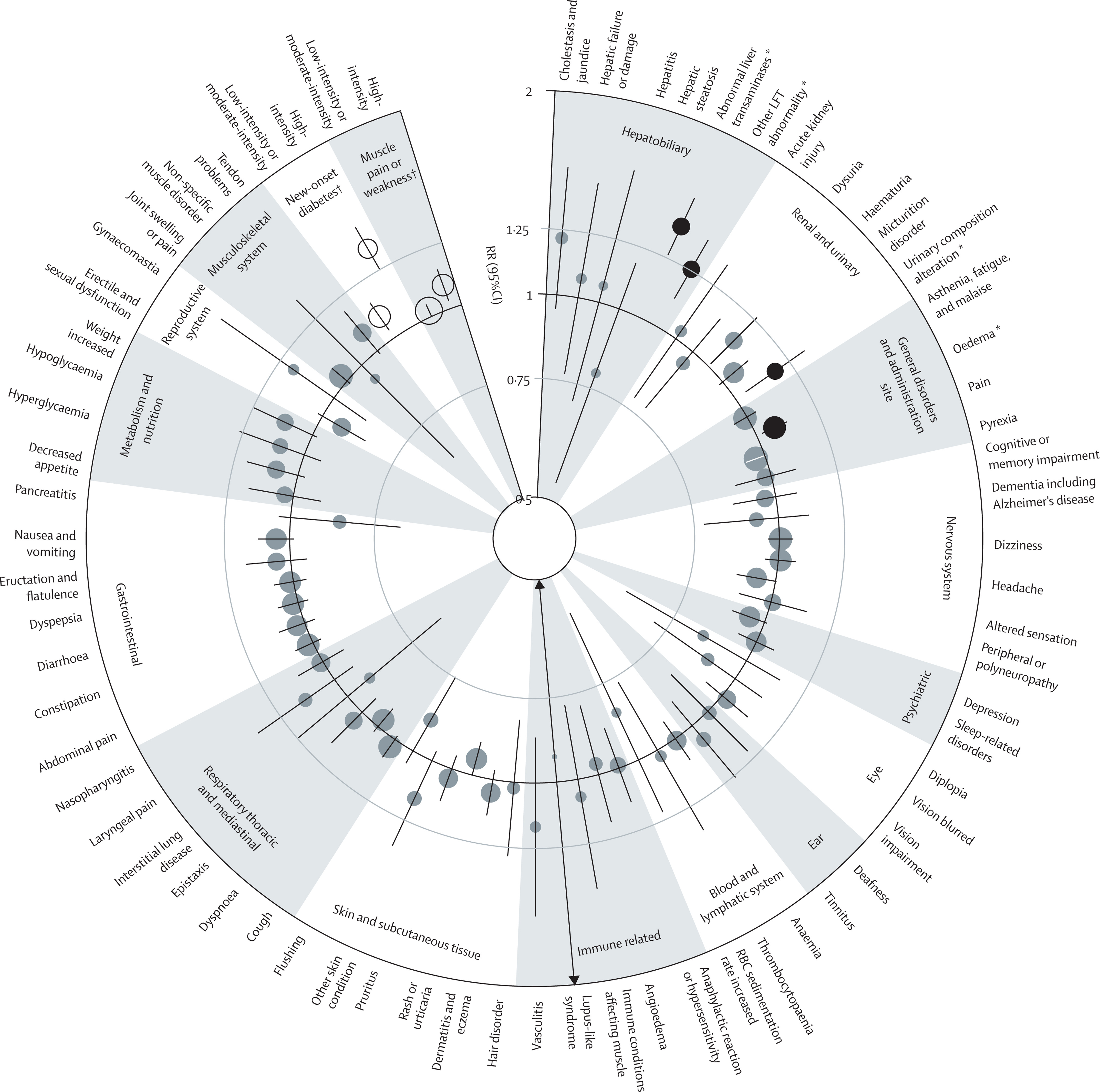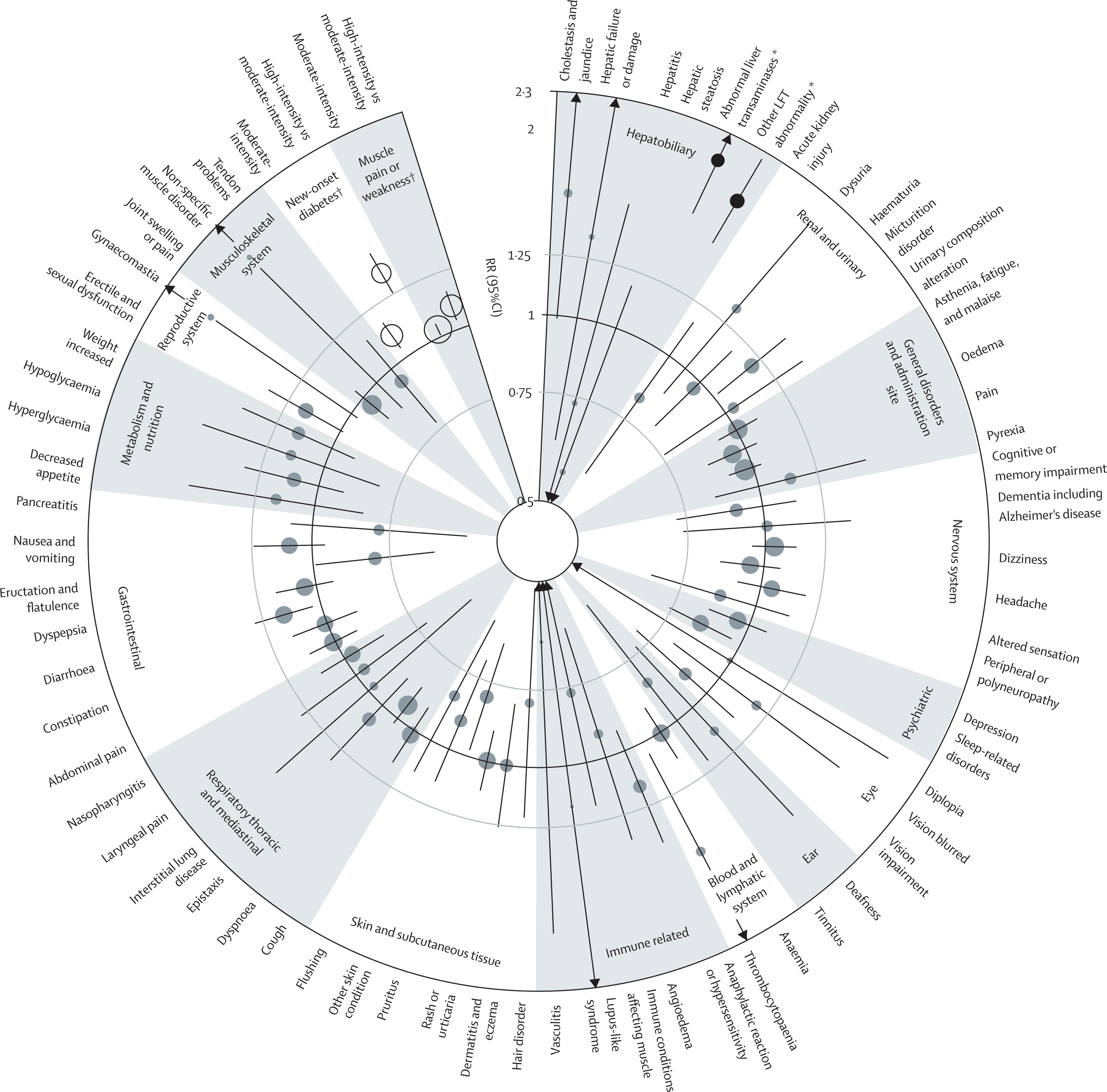 Figure 2 Effect of more intensive statin therapy versus less intensive statin therapy on events listed in statin SmPCs, subdivided by component parts