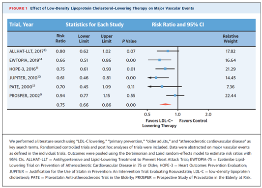 Another review looked at studies that included older adults to see if lipid lowering therapy made a difference or reduced risk. They found that lipid lowering therapy in those greater than age 65 showed tremendous risk reductions.